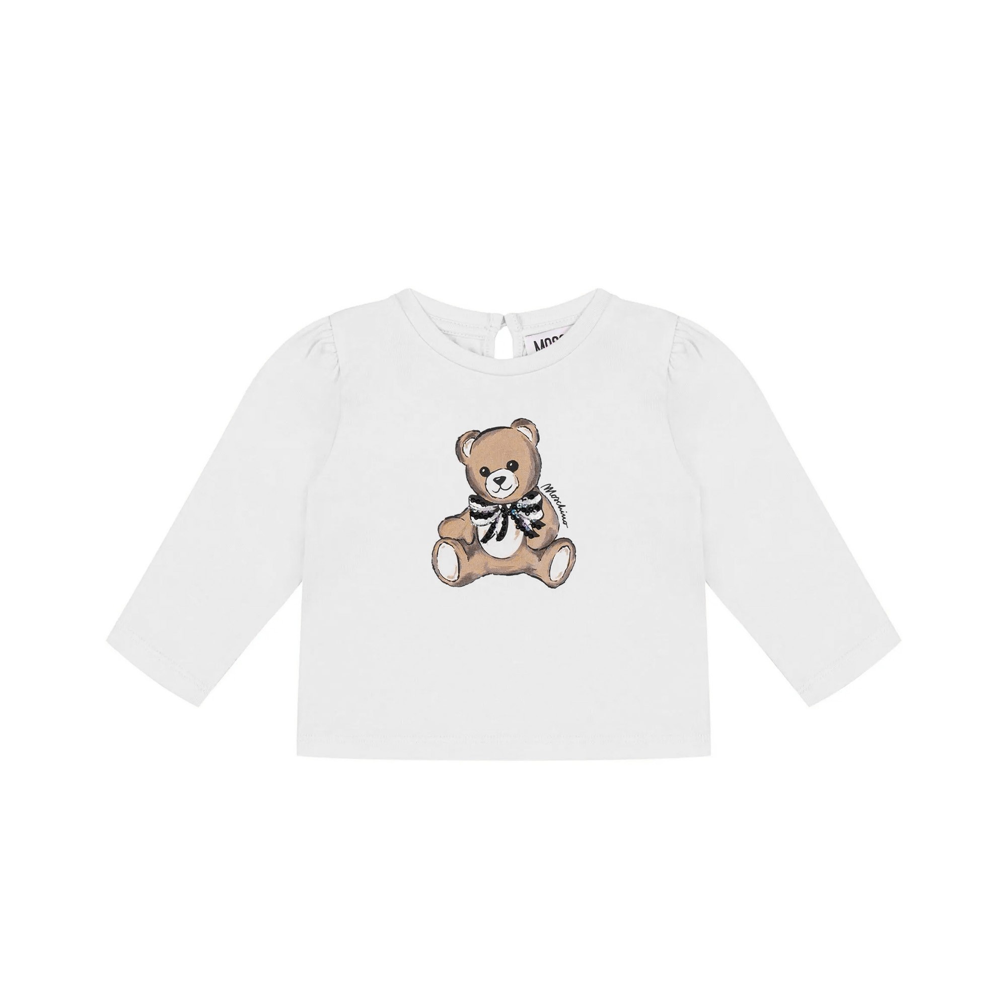 MOSCHINO T-shirt bianca a maniche lunghe Moschino Bear neonata