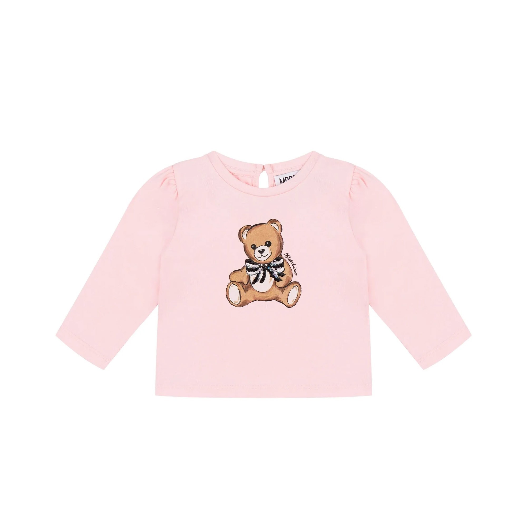 MOSCHINO T-shirt rosa a maniche lunghe Moschino Bear neonata