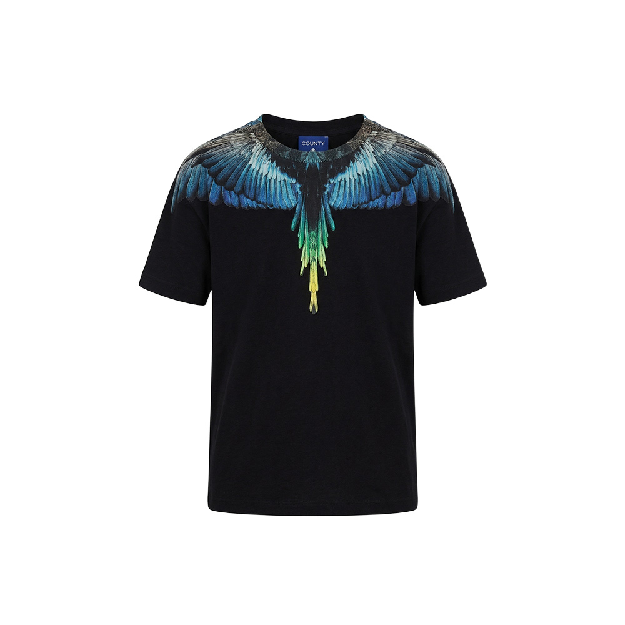 COUNTY OF MILAN T-shirt nera con stampa multicolor bambino
