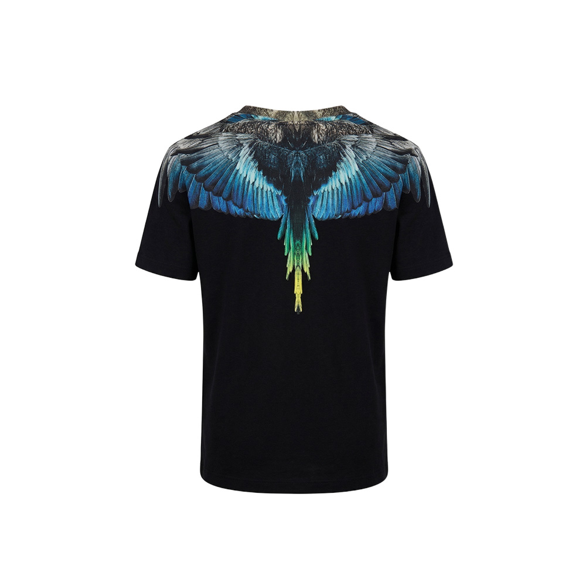 linea regular, la grafica ad ali multicolor avvolge collo e spalle.