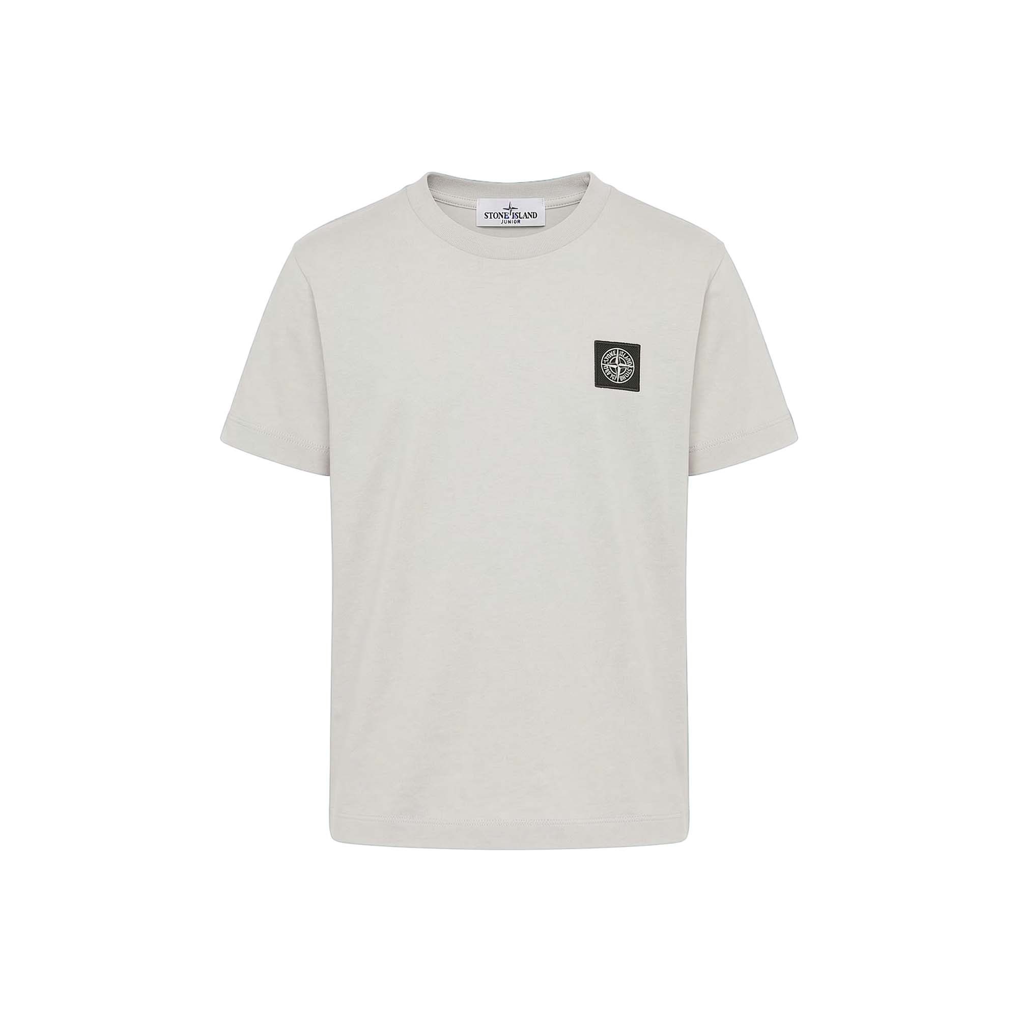 STONE ISLAND T-shirt grigio perla patch logo nera bambini