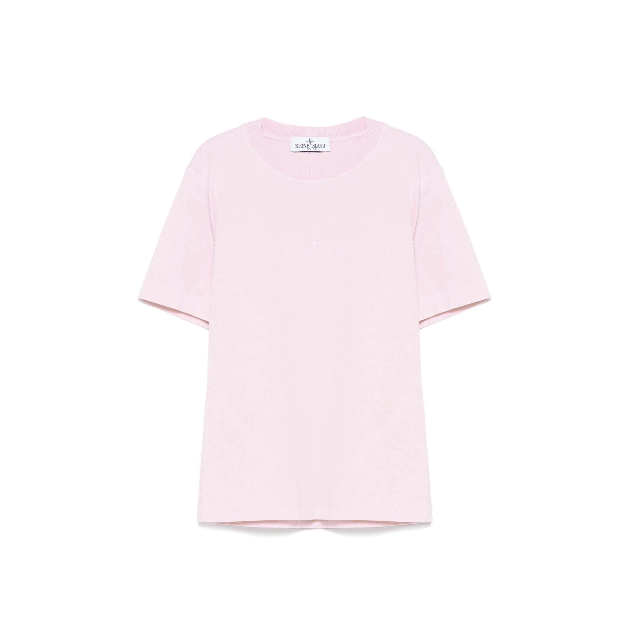 STONE ISLAND T-shirt rosa logo ricamato bambini