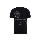 Bussola stampata sul petto e dettaglio scritte stampate sul retro.