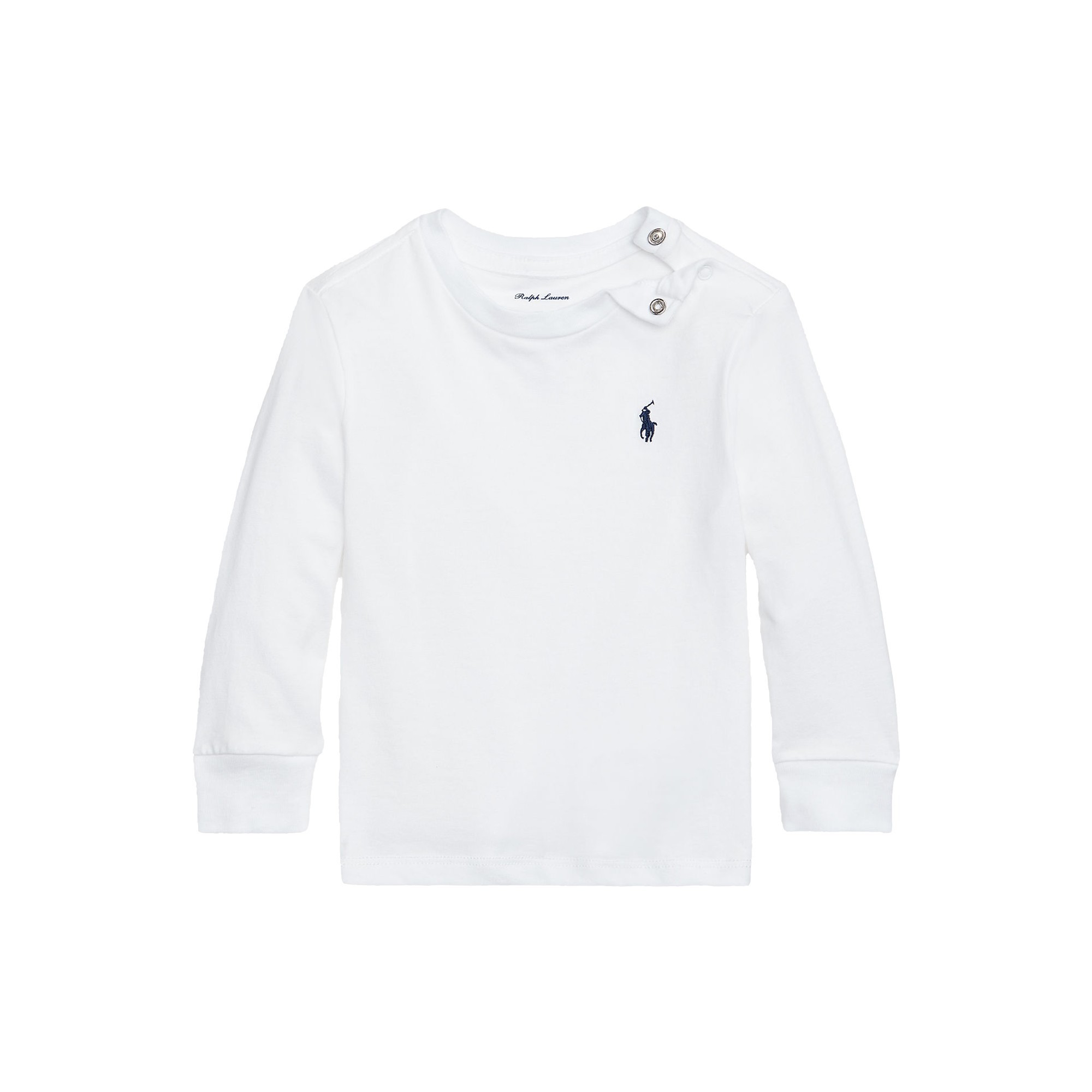 RALPH LAUREN T-shirt bianca a manica lunga con ricamo neonati