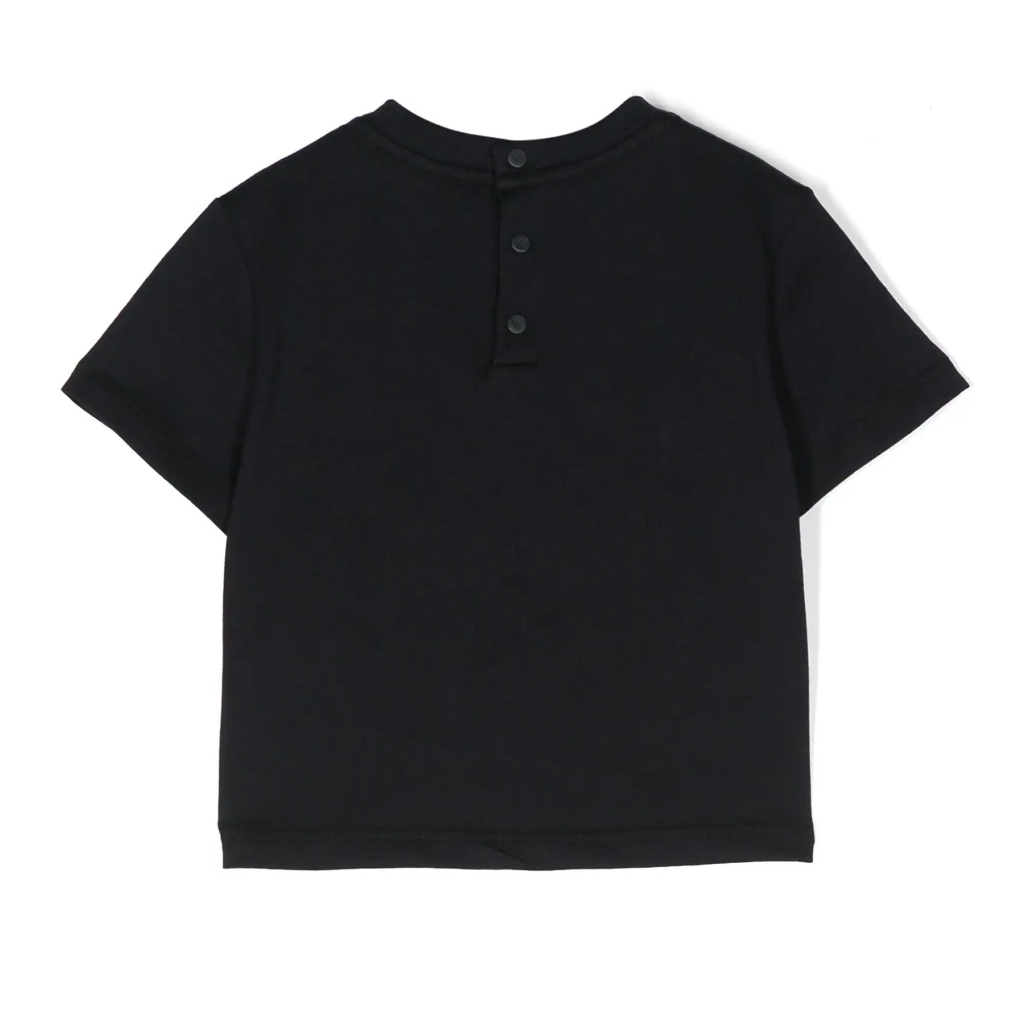 T-shirt manica corta blu navy in cotone trama jersey stampa con logo sul davanti modello girocollo con apertura posteriore tramite bottoni a pressione maniche corte orlo dritto