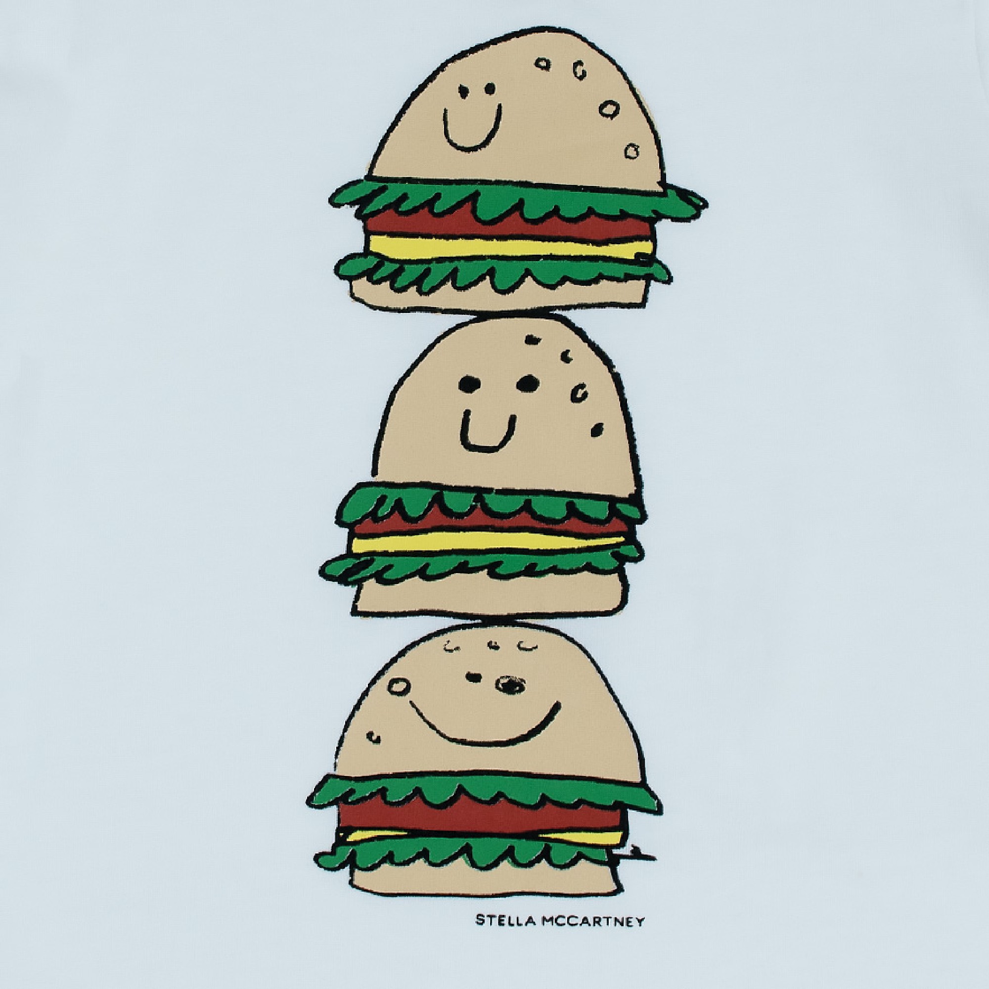 T-shirt colore bianca per bambino o bambina di Stella McCartney Kids in cotone organico con manica corta modello girocollo con apertura comoda tramite due bottoni laterali a pressione vestibilità regolare stampa frontale ,tessuto jersey .