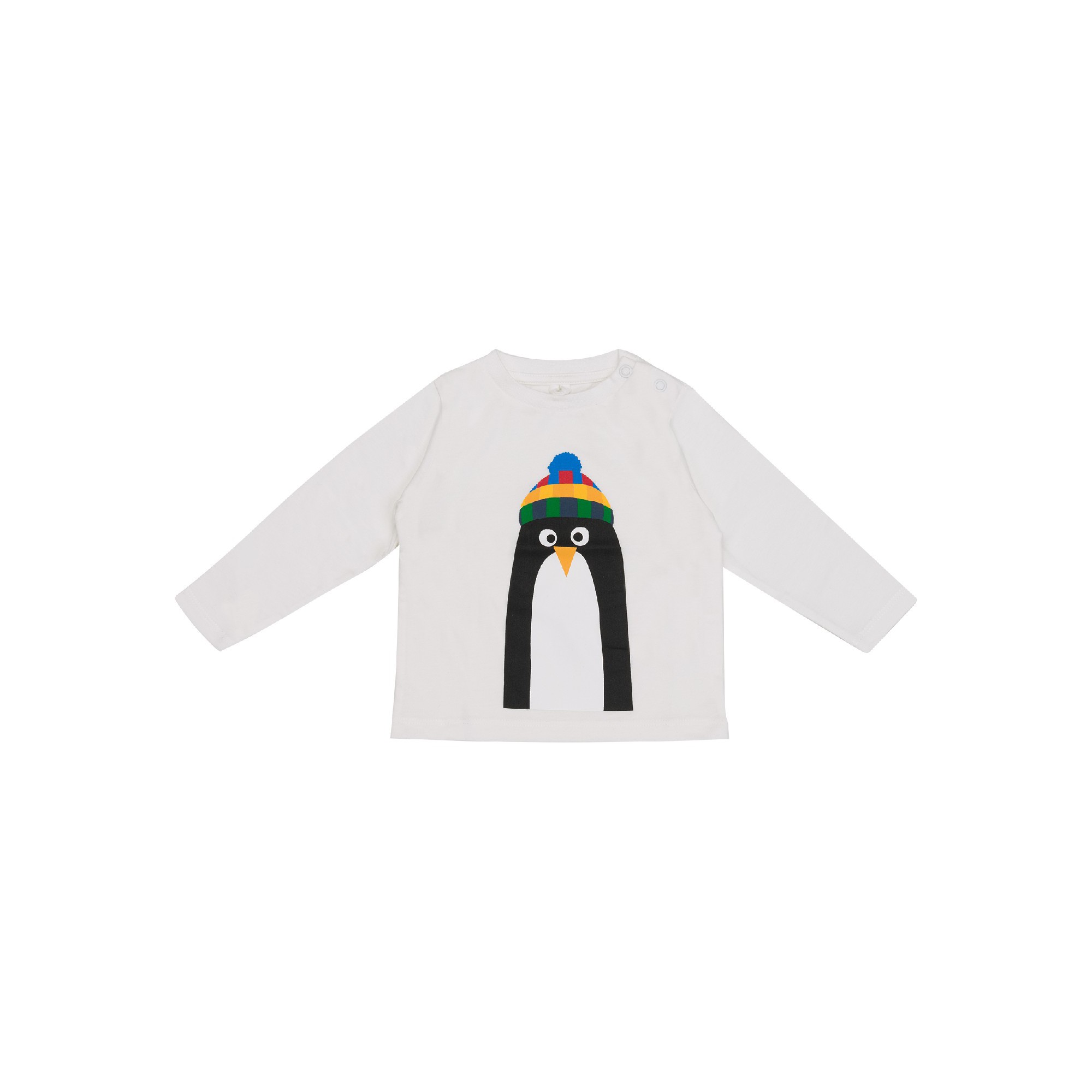 T-shirt manica lunga con apertura sul collo con bottoni a pressione e stampa pinguino con cappello