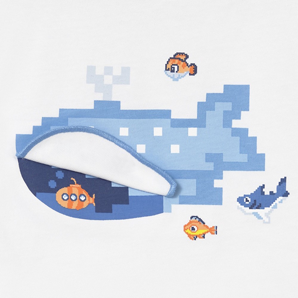 senza maniche, dettaglio applicazione interattiva sulla stampa.
