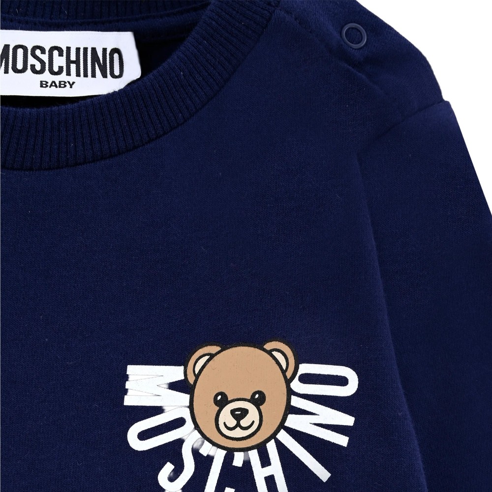 MOSCHINO T-shirt blu a maniche lunghe logo neonati