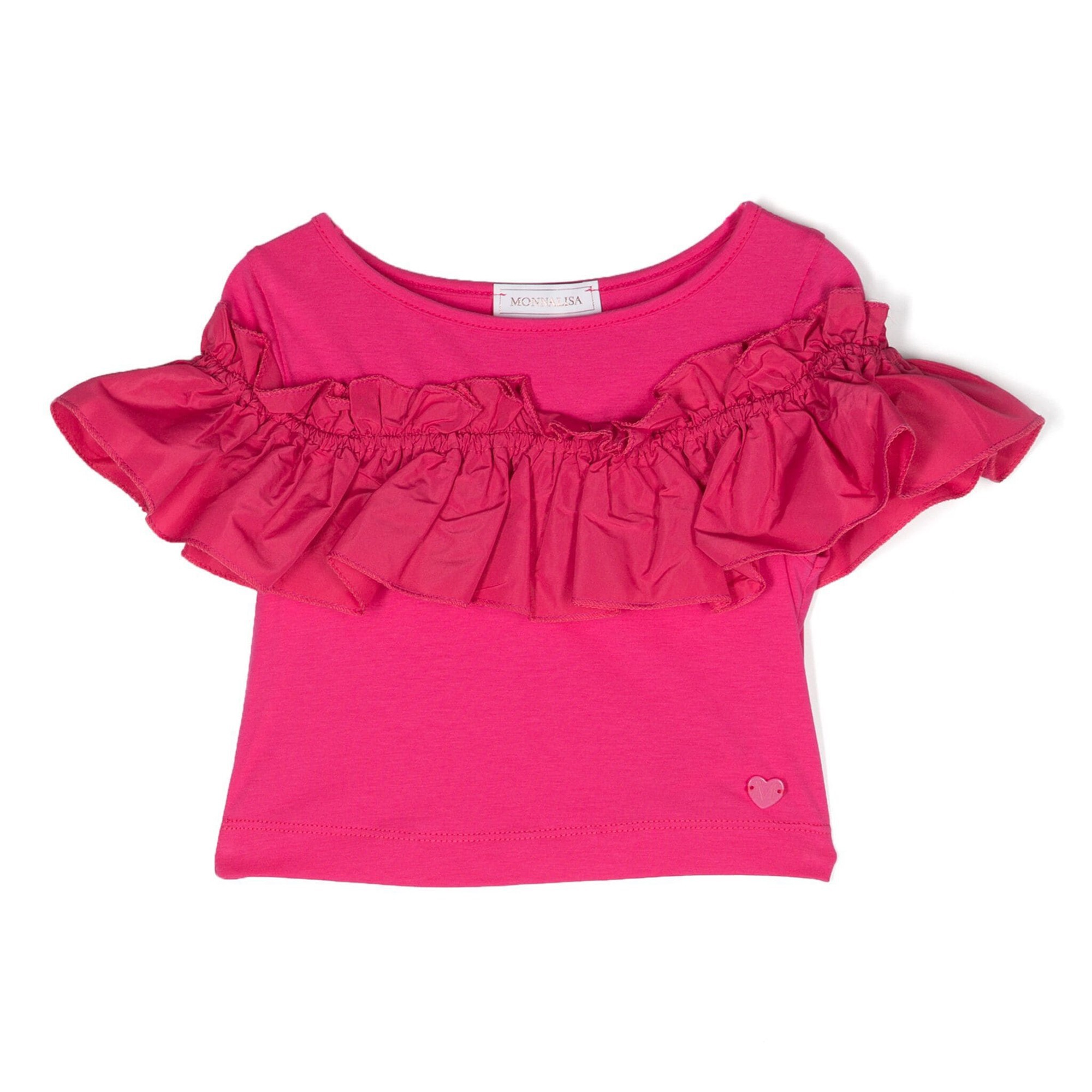 MONNALISA T-shirt con rifinitura di ruches rosa scuro bambina