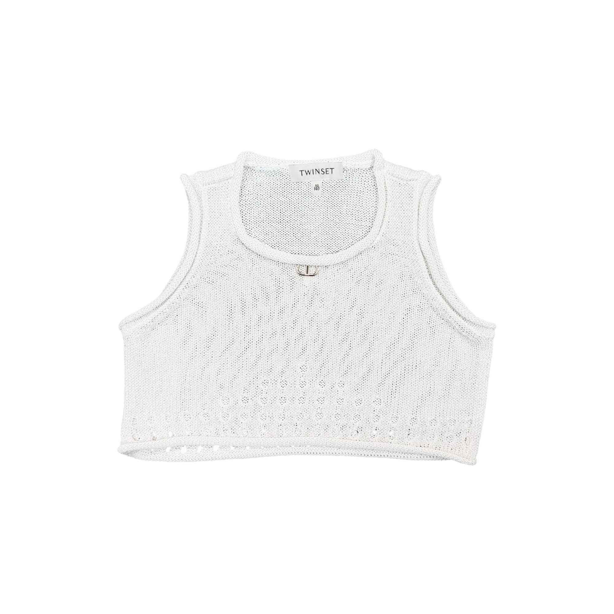 TWIN-SET Top bianco traforato lamé bambina