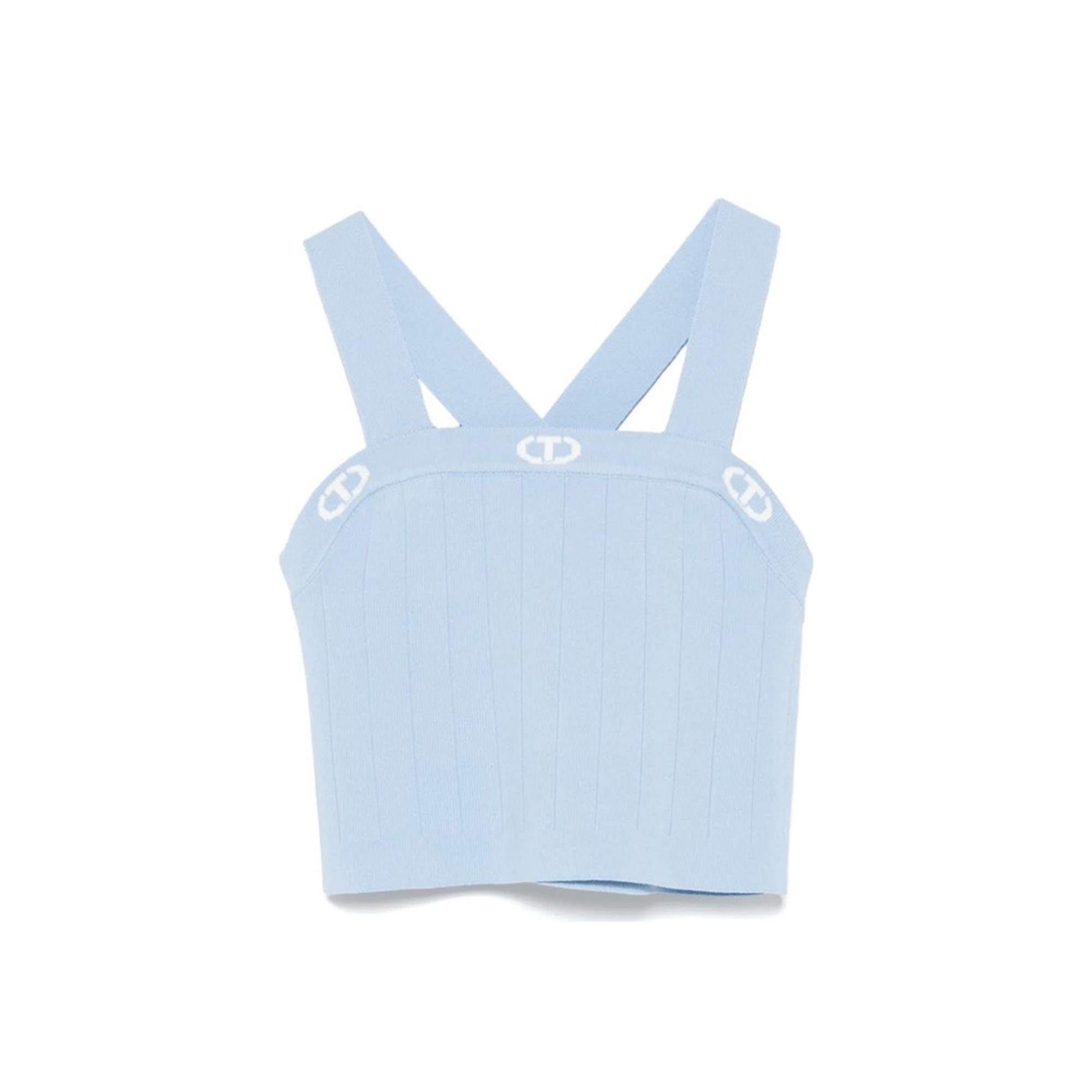 TWIN-SET Top celeste a coste in filo bambina