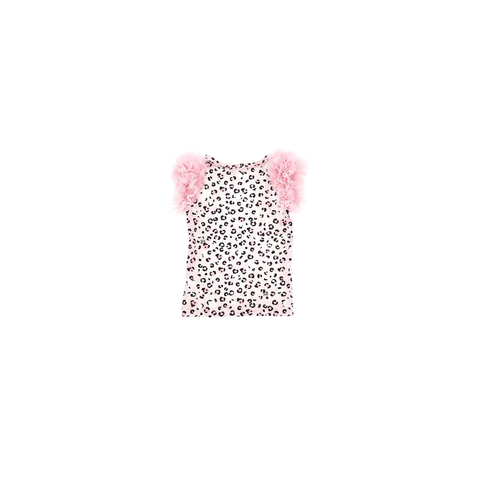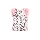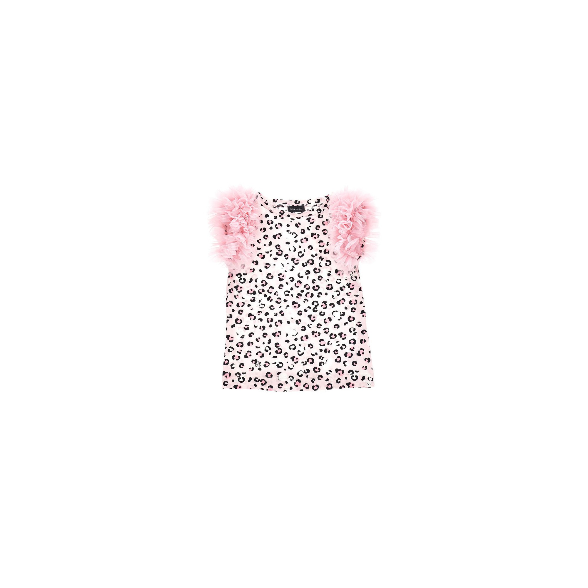 T-shirt fantasia leopardata con applicazione rouches su spalline