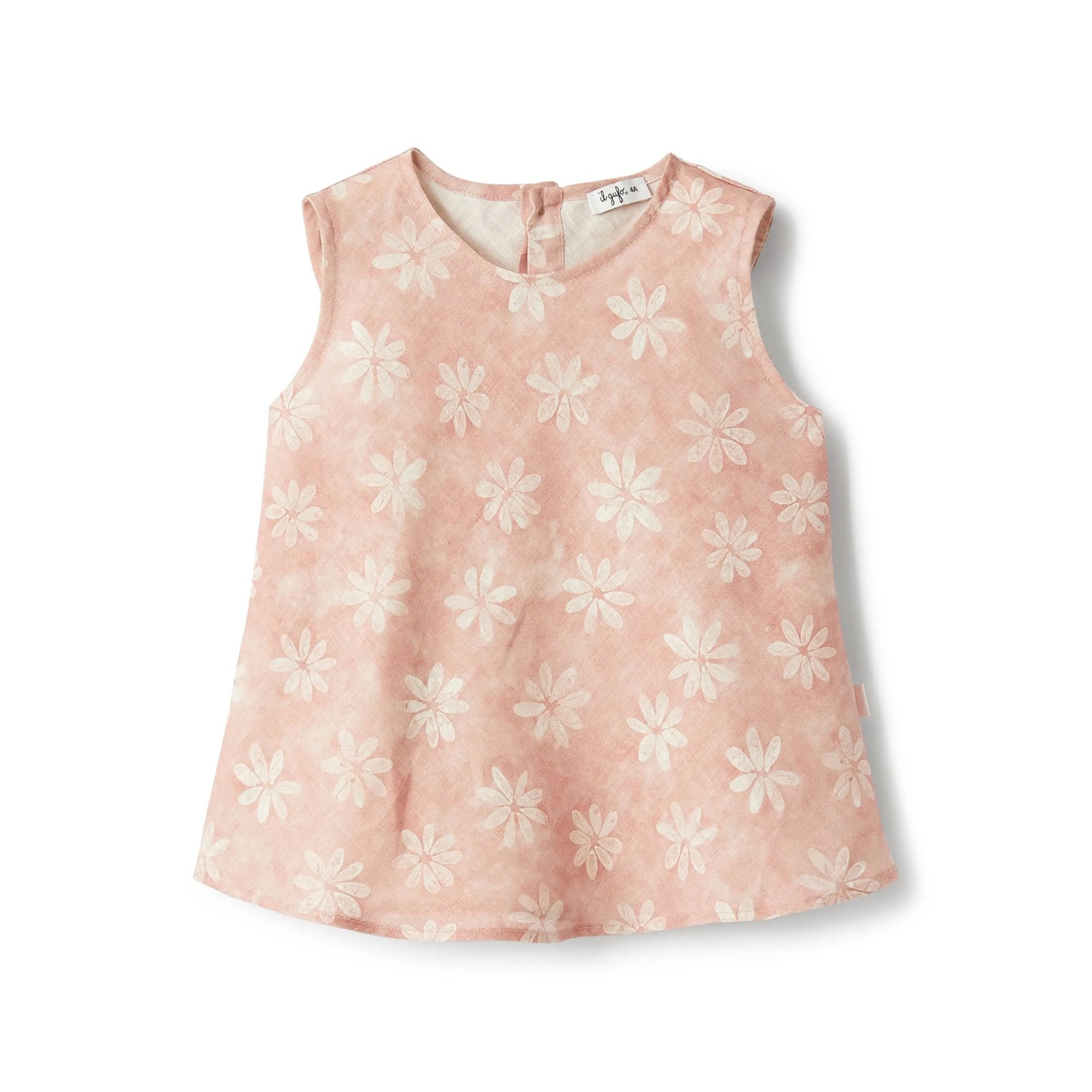 IL GUFO Top rosa smanicato con fiorellini bambina