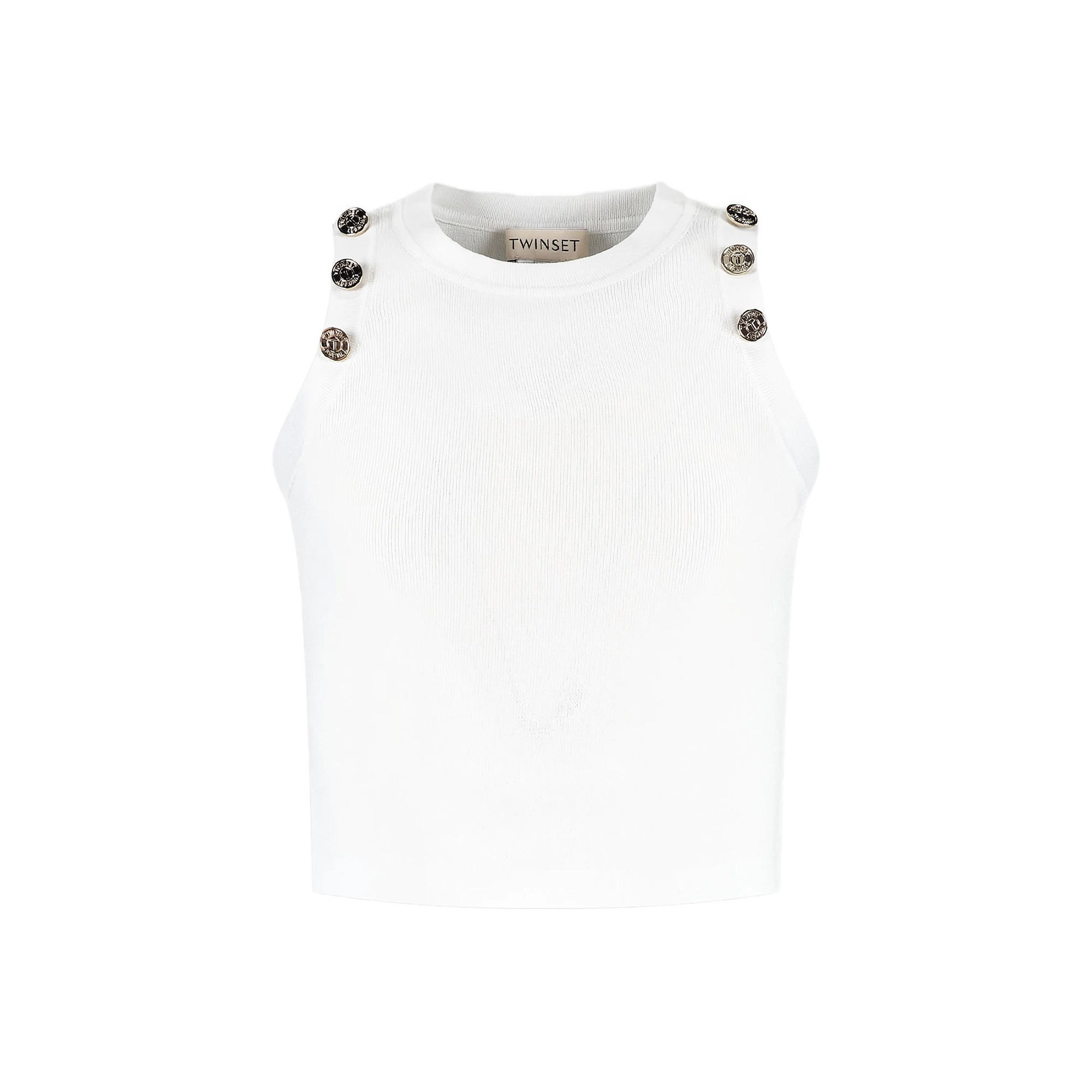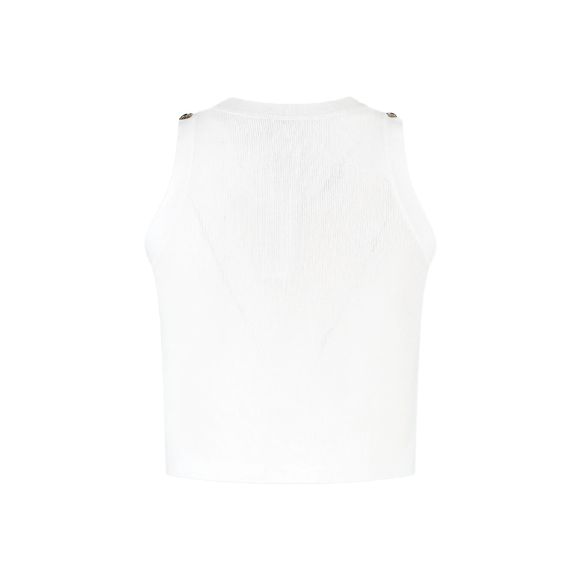 Lavorazione in maglia, cropped fit e bottoni logati.