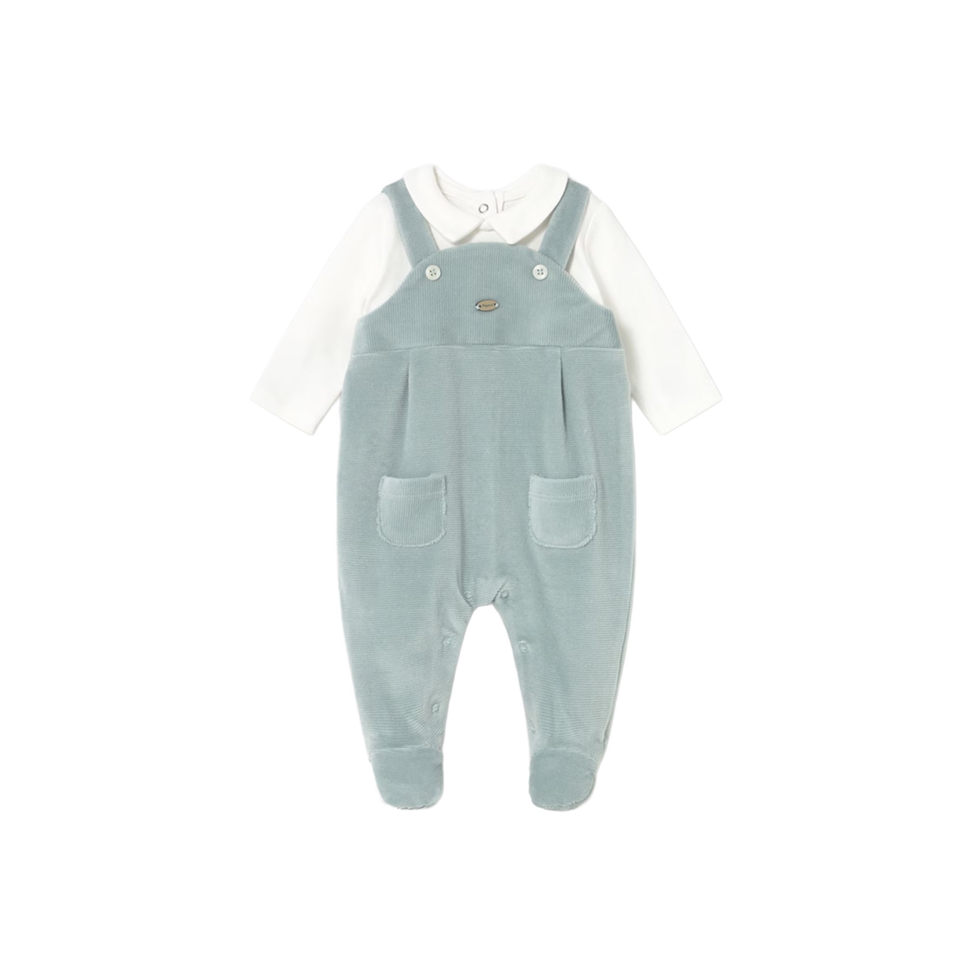 MAYORAL NEWBORN Tutina verde acqua finta salopette neonato
