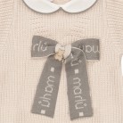 Tutina in lana naturale con colletto rotondo con profilo in contrasto fiocco decorativo frontale apertura comoda posteriore e sul fondo