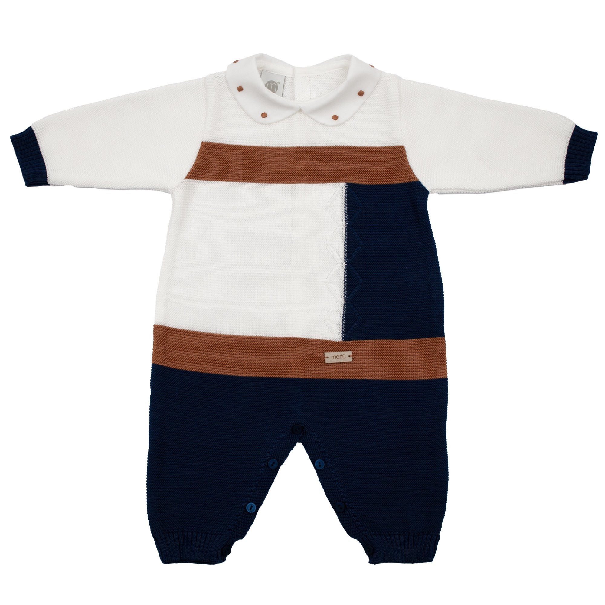 MARLU' Tutina di Marlù in cotone bianco/blu/tegola manica lunga neonato