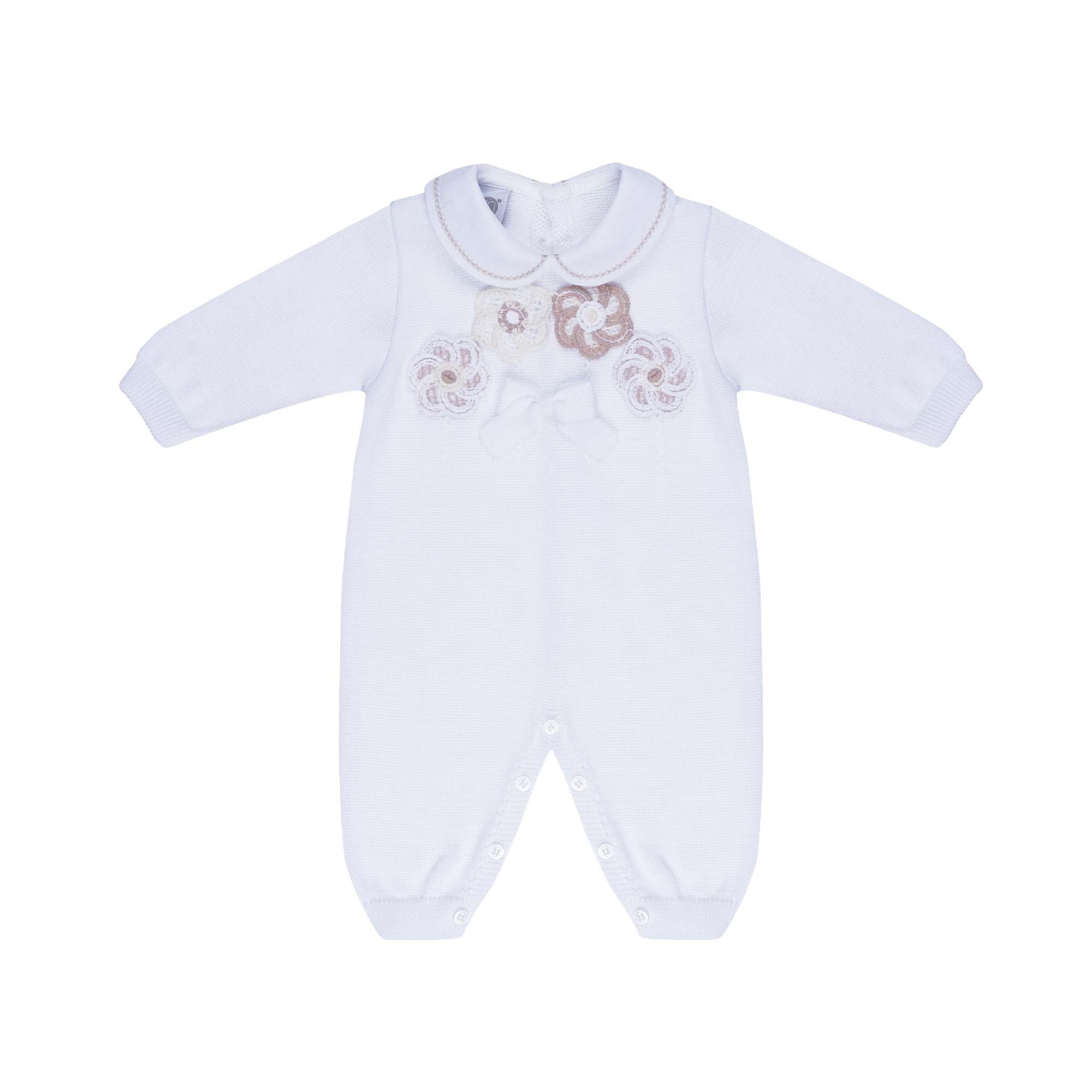 polsini e caviglie a costine, fiorellini sabbia applicati sul petto,