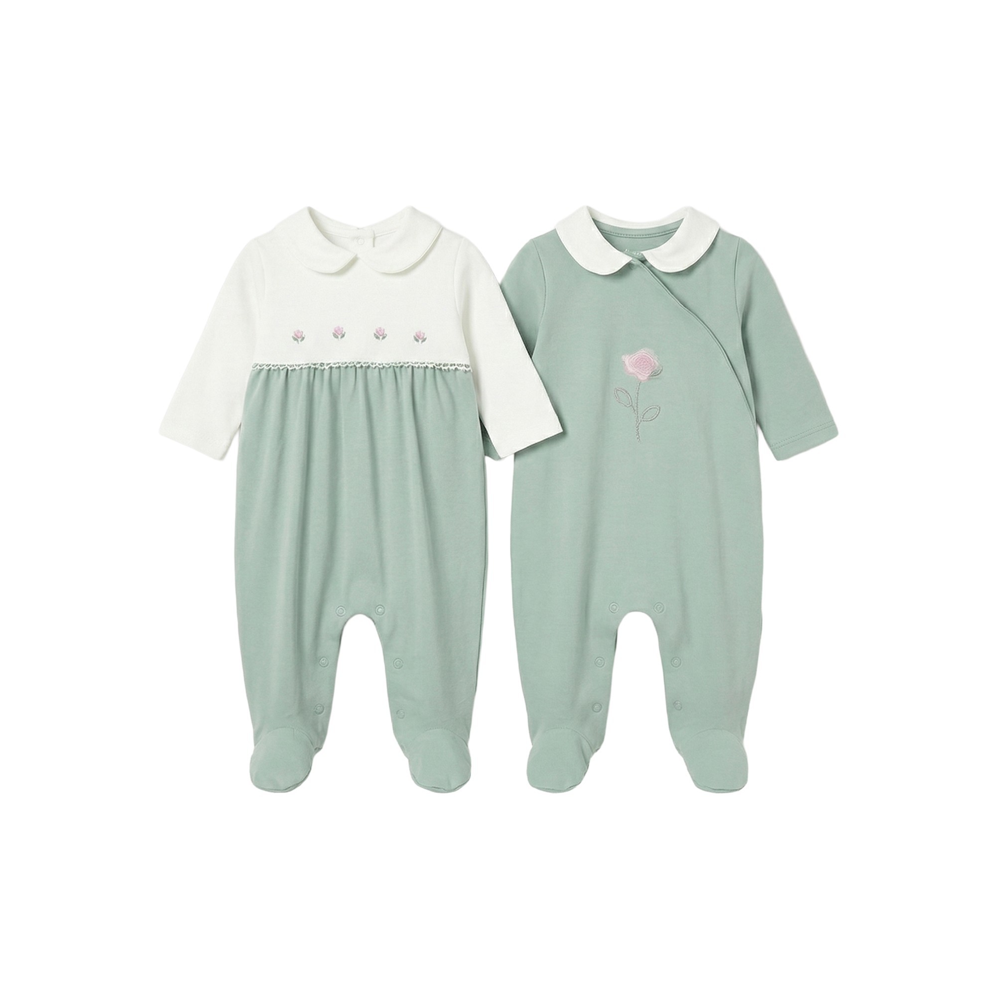 MAYORAL NEWBORN Set di 2 tutine lunghe verde acqua neonata