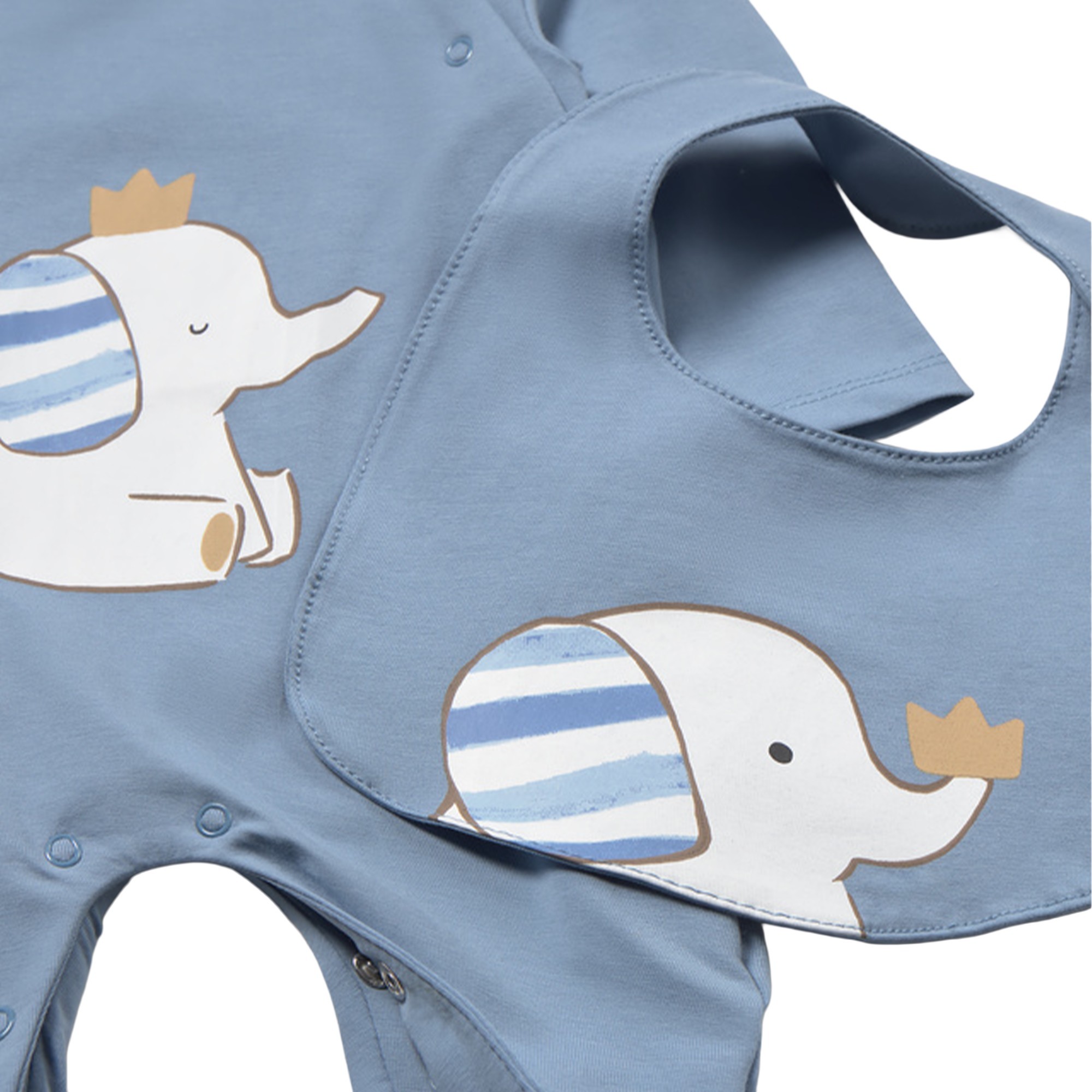 Bavetta azzurra con stampa che completa la tutina.