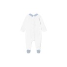 Colletto celeste, ricami sul petto, piedini chiusi,