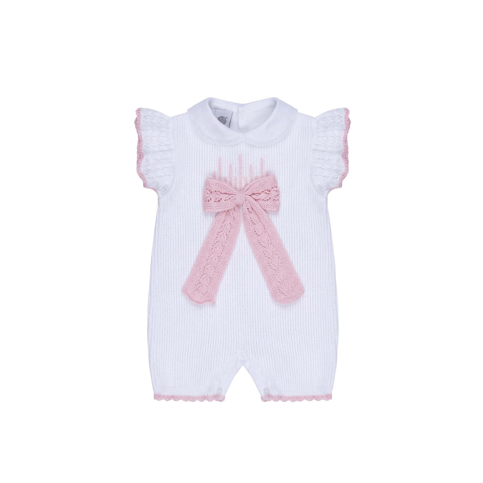 MARLU' Tutina corta bianca e rosa neonata