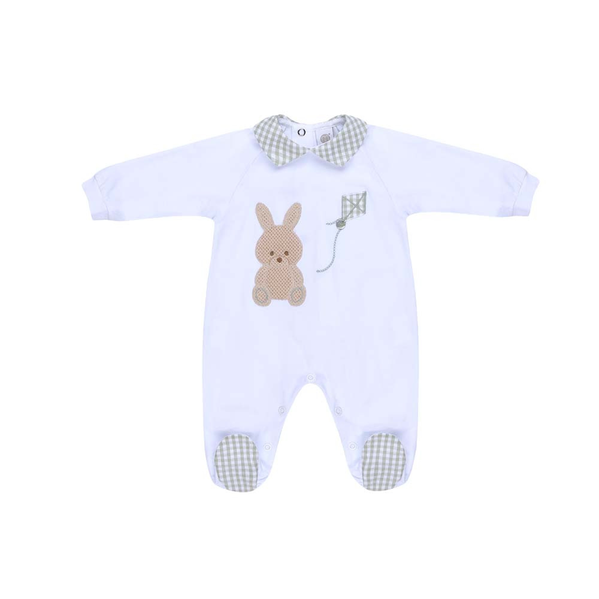 polsini a costine, coniglietto e acquilone a quadri sul petto,